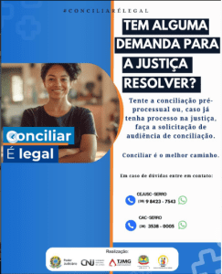 O CAC da Câmara Municipal de Serro, em parceria com o CEJUSC Serro, informa que de 3 a 7 de novembro de 2025 será realizada a 20ª Semana Nacional da Conciliação.